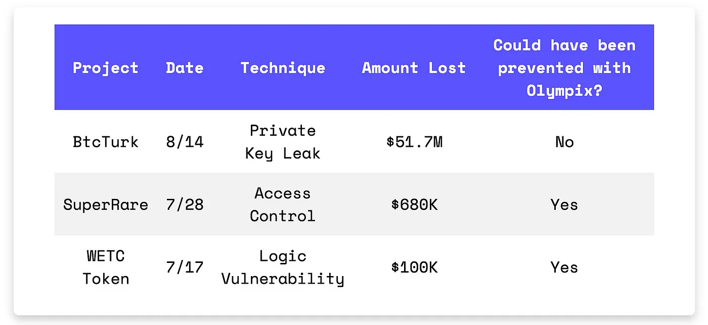 in losses could have been prevented with Olympix since Aug, 2024.